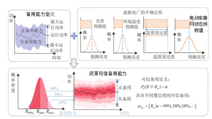 对此,团队以实现虚拟电厂多元资源鲁棒、协同、灵活调控为目标开展研究:首先提出出了基于数据-机理双驱动的虚拟电厂资源自适应分配策略,融合近端策略优化(PPO)强化学习方法,显著提升了多市场环境下资源调度的经济性与响应精度;针对电网保供需求,构建了多元灵活资源协同优化模型,并提出QR-SiameseLSTM神经网络可调潜力预测方法,实现了电力保供场景下的高效可靠调控;。进一步提出了面向系统随机偏差的滚动优化实时调整机制,实现以经济性最优为目标的前提下,多元柔性资源对调度偏差的协同消除与动态响应。在此基础上,开发了考虑备用调节裕度的弹性调节与应急响应技术,引入可信备用量化方法,提升了虚拟电厂应对极端场景的弹性能力。研究成果在浙江、上海虚拟电厂开展示范应用,形成工程技术闭环。