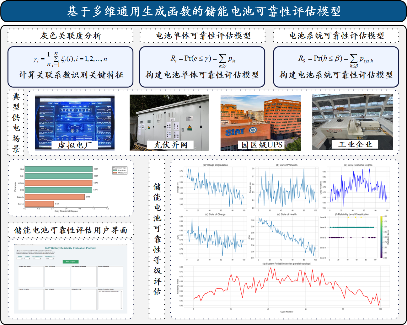 构建了储能系统典型故障模型与仿真模块,提出多参量分析与参数跟踪方法,实现异常电池模块定位、信息可视化、预警及性能演化分析。通过外部特征响应解析内在机理,形成多层次、多参量的可靠性状态分析方法,并在多场景下验证可靠性评估模块的有效性。进一步结合电池老化特性、健康状态与指标权重,建立可靠性评估模型,揭示储能系统全生命周期的性能退化与可靠性演化规律。